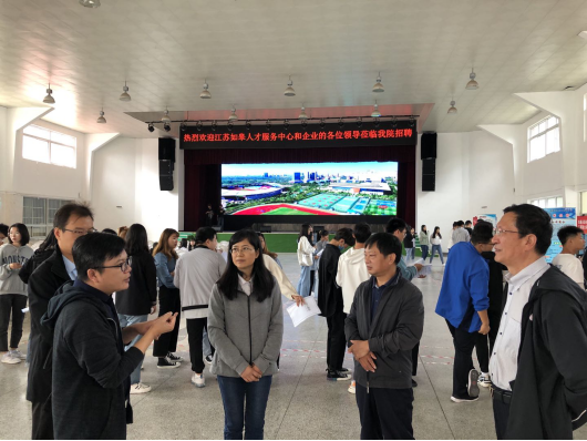 招聘会期间,党委书记陈宁、党委副书记任得元、招生就业处处长袁军儒同如皋市人社局领导进行了沟通交流,初步达成了校政合作的初步意向,为我院和如皋市以后的长期合作奠定了良好的基础。