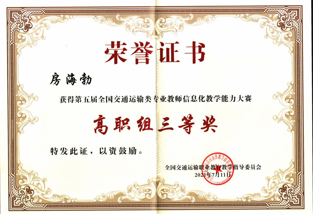 7月8日至11日,第五届全国交通运输类专业教师信息化教学能力大赛总决赛在河南交通职业技术学院举行,我校交通与测绘工程学院教师房海勃、宋丽梅分别获三等奖,学校获信息化教学创新典范奖。