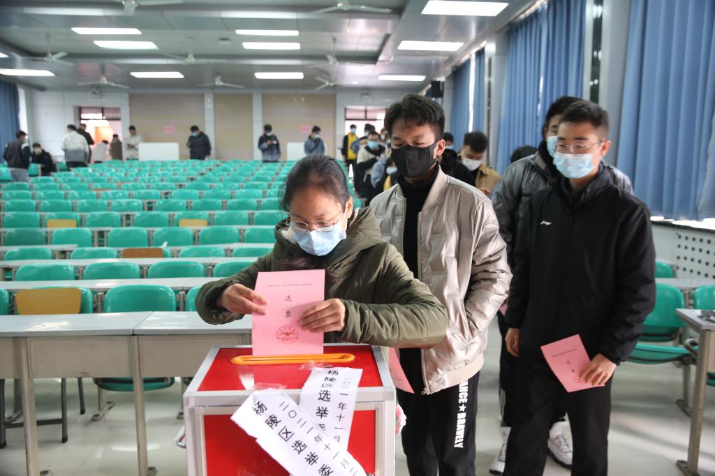11月28日上午,学校4个选区1647名选民按照“同时进行、分批投票”的方式进行杨陵区第十届人民代表大会代表选举。 学校作为杨陵区第19、80、81、82选区,分配人大代表11名,共登记选民1647人,参加投票人数为1568人,参选率达95.2%。为确保选举有序进行,学校在三个校区共设置投票主会场1个,分会场3个,流动票箱3个,各投票站落实疫情防控工作要求,按照不影响学习工作、有序投票的原则,师生保持距离、配戴口罩,分组、分时间段组织投票。在各投票现场,工作人员严格依照选举程序检查票箱、核验选民证、发放选票,师生员工凭选民证依次领票、写票和投票,秩序井然、气氛庄重。
