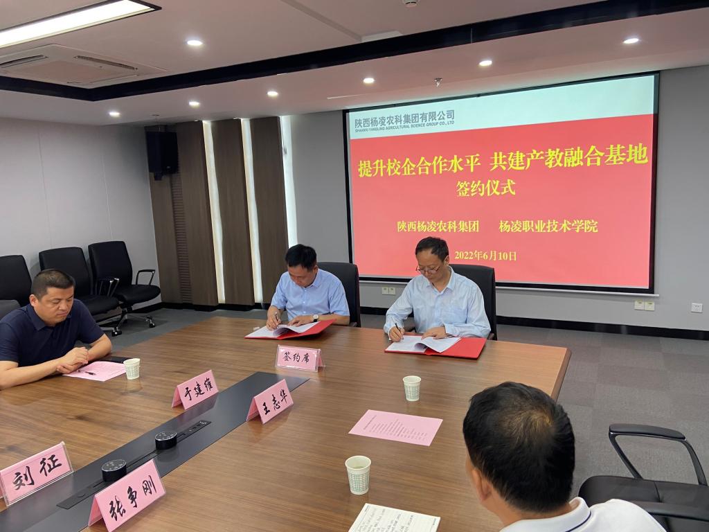 6月10日上午,学校与陕西杨凌农科集团有限公司校企合作共建产教融合实训基地签约仪式在杨凌种业国际大厦1602会议室举行。副校长祝战斌,陕西杨凌农科集团有限公司总经理崔卫军出席签约仪式。