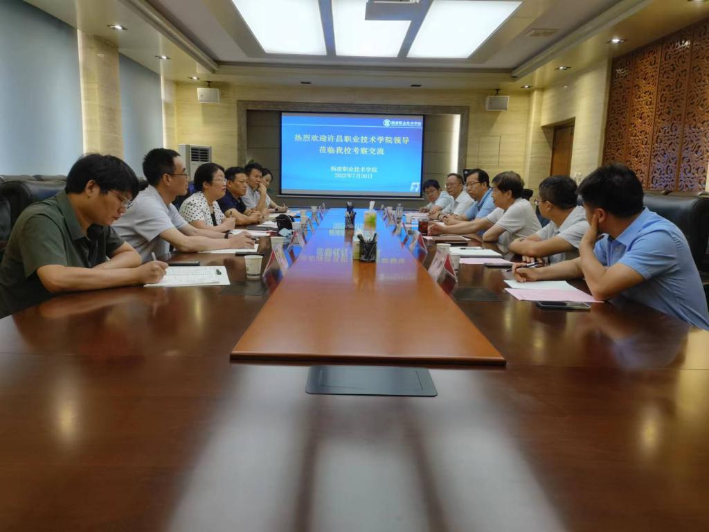 7月30日上午,许昌职业技术学院副院长郭玉萍一行6人来我校,就双高建设、社会服务、对外培训等工作进行考察交流。学校副校长祝战斌,党委委员、党政办公室主任张朝晖陪同考察并座谈交流,发展规划处、继续教育与培训学院、机电工程学院、信息工程学院等相关部门负责人参加了座谈会。