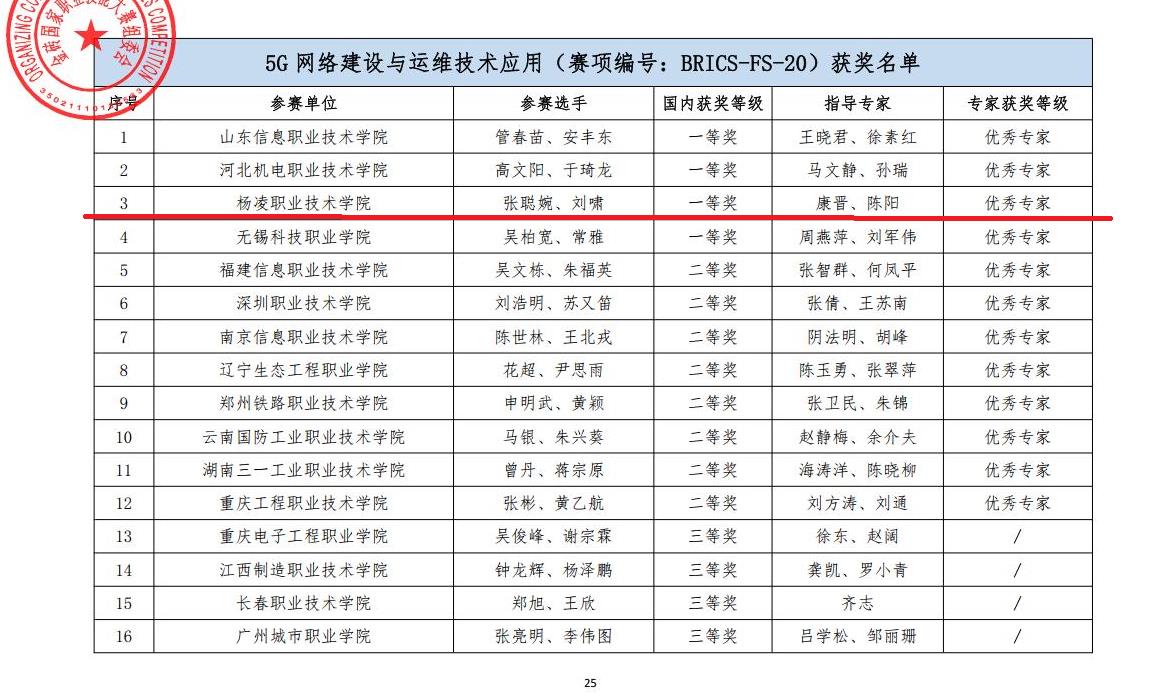 学校荣获金砖国家职业技能大赛“5G建设与运维技术应用”赛项一等奖