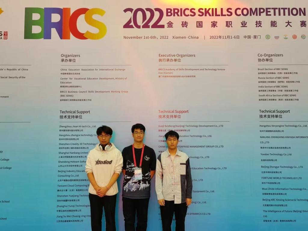11月5日-6日,2022年金砖国家职业技能大赛“网络安全”赛项决赛在福建厦门举行。由我校计算机应用技术专业学生卜宋博、梁嘉荣、王兴组成的陕西代表队荣获三等奖。