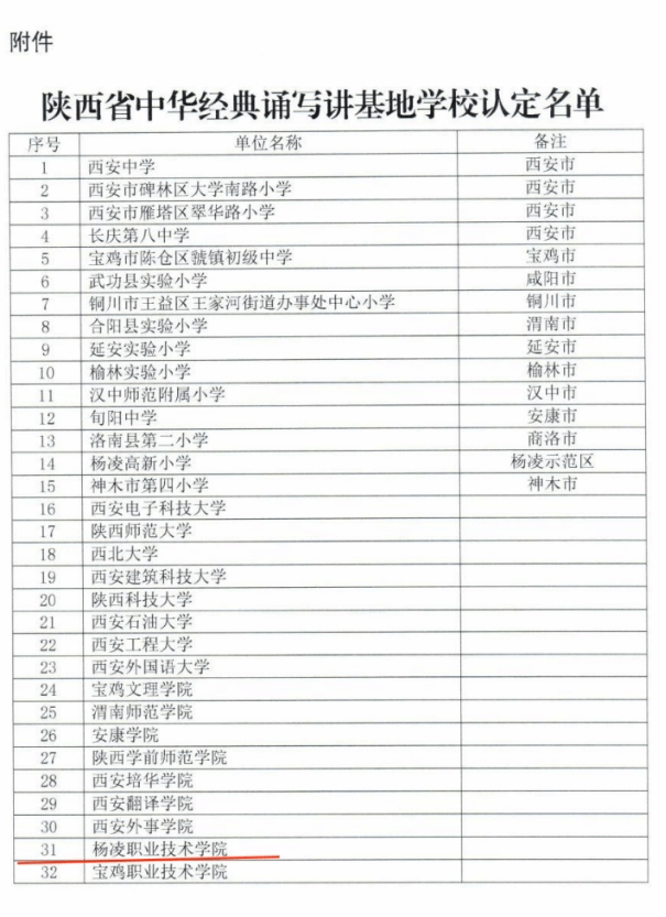 4月23日,陕西省教育厅公布了第三批国家语言文字推广基地暨首批陕西省中华经典诵写讲基地学校认定名单,我校成功被省教育厅推荐为申报国家语言文字推广基地单位,并认定为省级中华经典诵写讲基地学校。