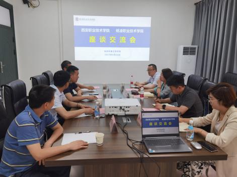 座谈交流中,朱亮亮介绍了我校办学基本情况,以及智慧农业虚拟仿真建设情况。焦安红介绍了西安职业技术学院虚拟仿真建设情况,并就实训室建设与管理、教务管理等与我校教师进行了交流。