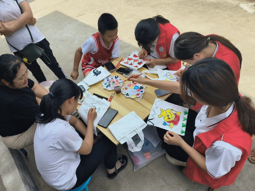 ——开展一次非遗文化进乡村,助力文化建设。学生党员、团员开展“汲汲知新语 倦倦思非遗”主题团辅活动,将特色“扎染”、“绒花”非遗活动带入乡村,引导学生与儿童在实践过程中自觉传承优秀文化,自觉保护好、发展好乡村文化遗产,促进乡村文化的传承与发扬,推动乡村文明,彰显文化自信。