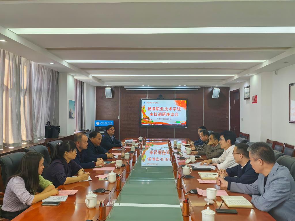 10月16日,党委书记王周锁带队赴渭南职院调研。副校长胡俊鹏,科技教育处长冯旭,招就处处长李岩,生物工程学院副院长王燕,继续教育与培训学院负责人黄璞等陪同调研。渭南职院党委书记华惠民,副书记、院长靳华锋,副校长王韦华,农林科技学院院长杨世选,党政办主任雷建文,科研处长黄玉剑,继续教育学院院长惠斌贤等参加座谈。座谈会由华惠民主持。