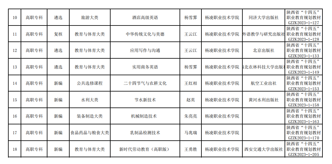 近日,省教育厅发布了陕西省“十四五”首批职业教育规划教材书目,我校18本教材入选。