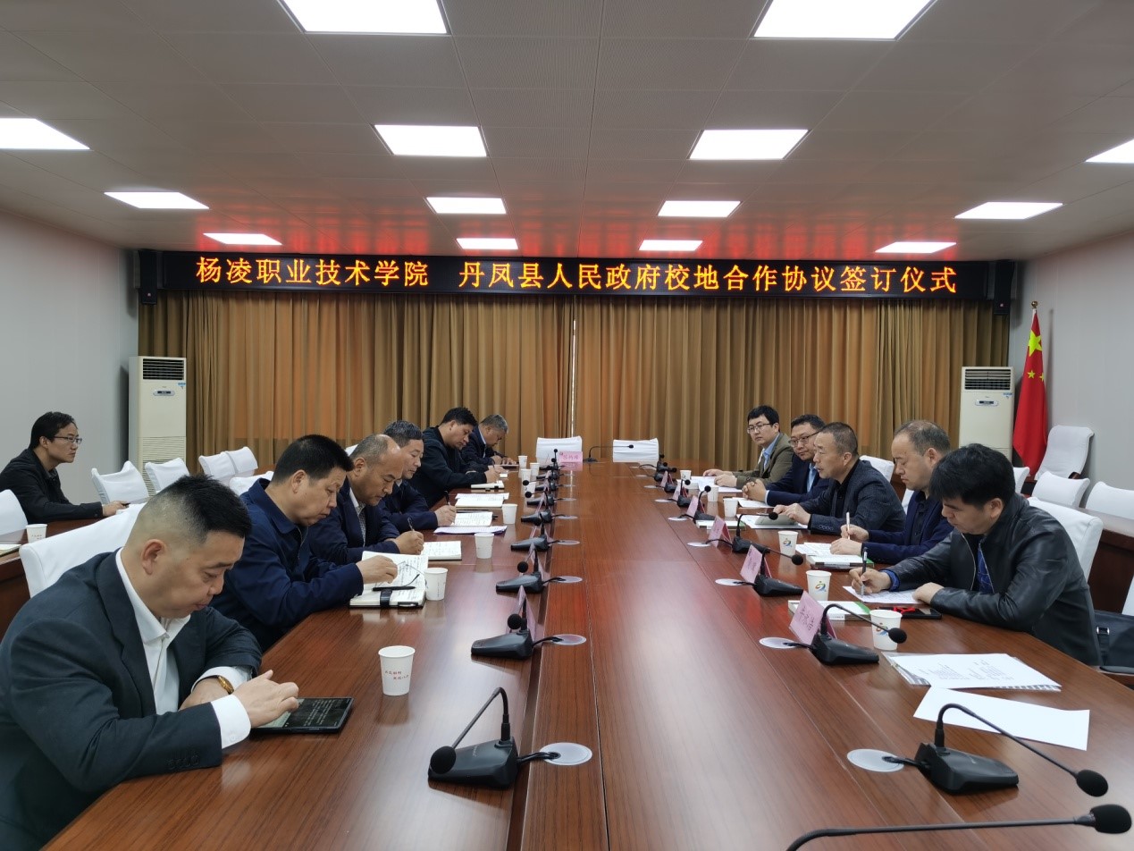 4月30日上午,学校与丹凤县人民政府签订校地合作协议。副校长胡俊鹏,丹凤县人民政府副县长龚富杰,丹凤县林业局局长罗浩、商贸局局长张鹏凯等出席签约仪式。