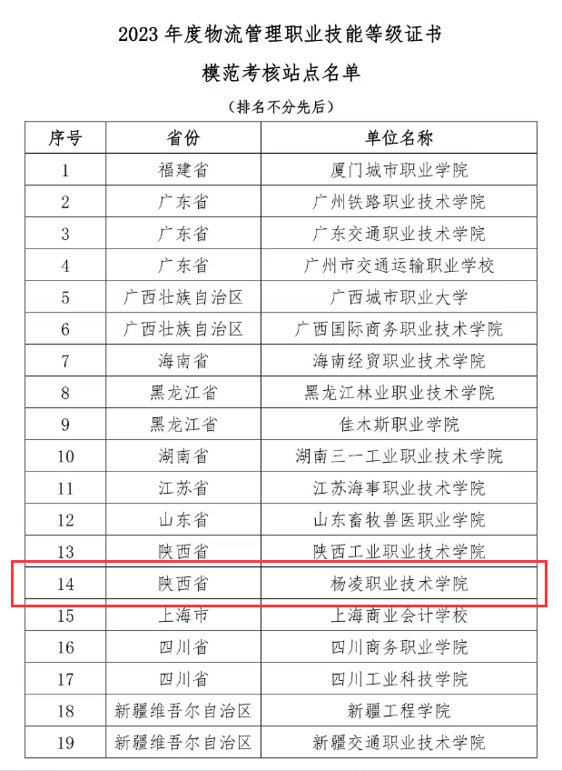 近日,中国物流与采购联合会公布了2023年度物流管理、供应链运营职业技能等级证书先进单位及个人名单,我校荣获“模范考核站点”称号,经济与贸易学院卫玉成老师被评为“优秀考评员”。