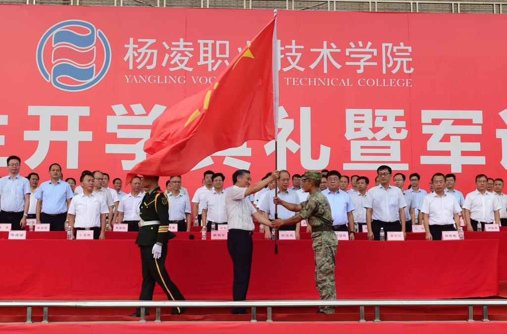 仲伟周在讲话中首先代表全校师生对来自全国各地的2024级新生表示热烈欢迎,并简要介绍了学校办学历史和基本情况。他寄语同学们,要崇德向善,做“心中有德”的新时代青年;要坚定理想,做“眼中有光”的新时代青年;要精技强能,做“肩上有责”的新时代青年;要踏实笃行,做“脚下有路”的新时代青年。他通过分享赵瑜老师“心中有德、眼中有光、肩上有责、脚下有路”的感人事迹,鼓励同学们以赵瑜老师为代表的杨职教师为榜样,心怀至善,志存高远,踏实奋进、精技强能,努力成长为可堪大用的德智体美劳全面发展的社会主义建设者和接班人。他希望,同学们要在军训中深化认识、增强观念,不断提升国防意识和爱国热情;耐得辛苦、忍得枯燥,面对各种困难,时刻保持饱满的热情和高昂的斗志;严守纪律、争当标兵,养成良好的习惯,争创佳绩,与教官共同努力,圆满完成军训任务,上好进入大学的第一课。