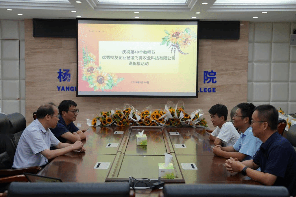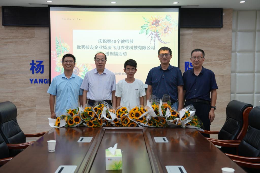 9月10日上午,我校校友、杨凌飞月农业科技有限公司总经理上官蒙飞专程返校,为母校送上教师节鲜花。校长仲伟周、副校长蒋平江亲切接见了上官蒙飞一行,并与校友进行座谈。人事教师处负责人,生物工程学院教师代表参加座谈。