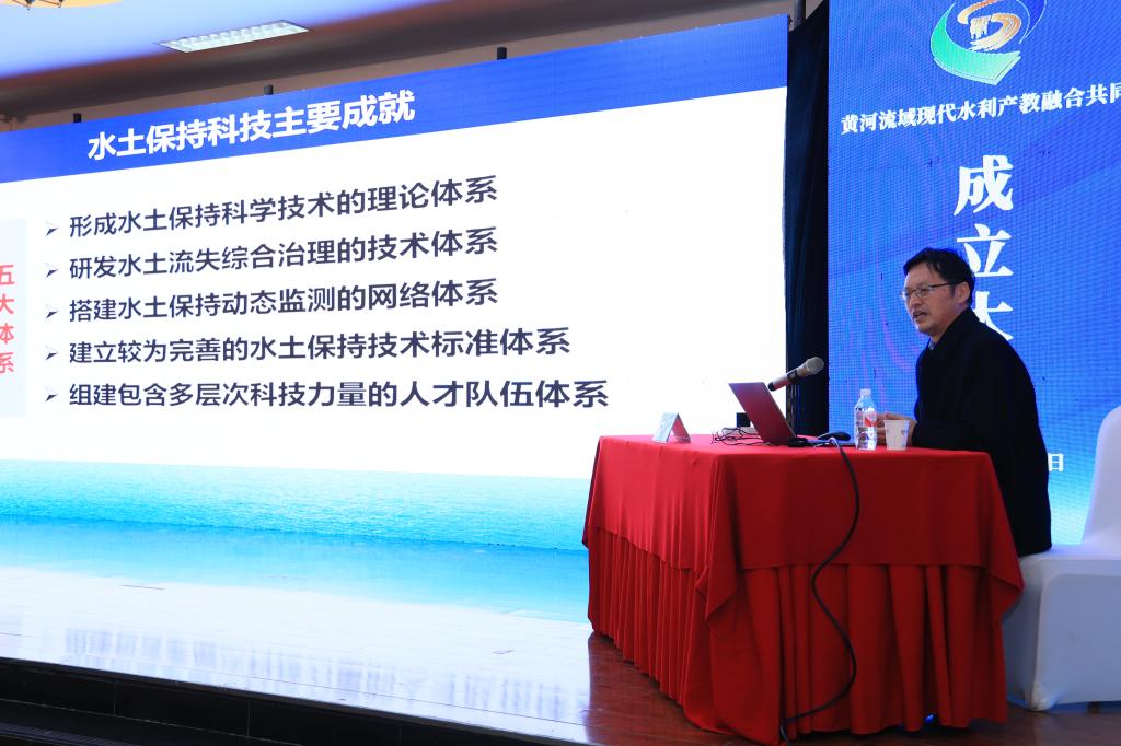 张斌成代表陕西省水利厅致辞,他对黄河流域现代水利产教融合共同体的未来发展提出了三点希望,一是希望共同体能够成为水利创新与人才培养的高地;二是希望共同体能够成为水利教育与产业融合发展的典范;三是希望共同体能够成为传承黄河文化、弘扬水利精神的重要载体。
