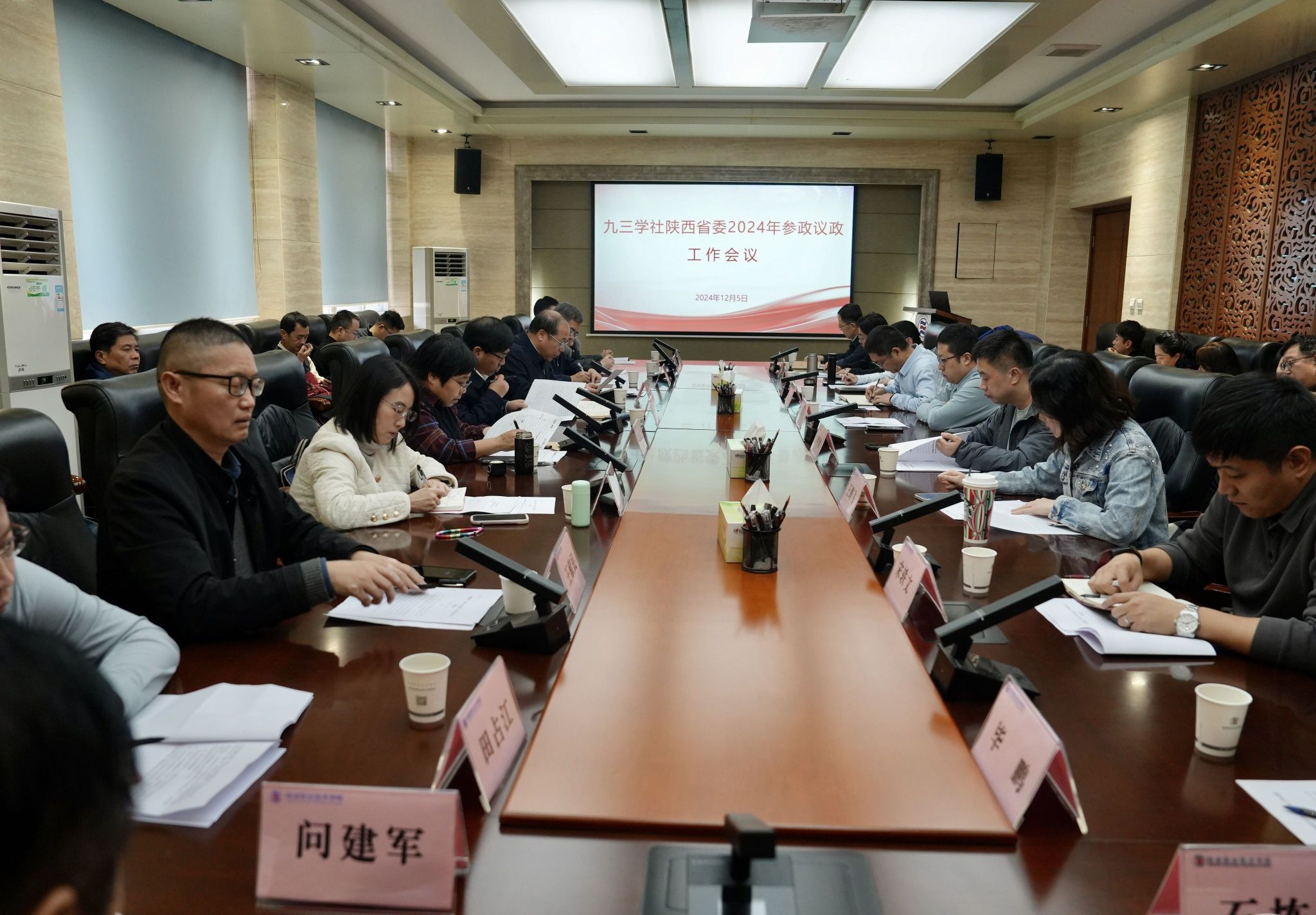12月5日,九三学社陕西省委2024年参政议政工作会议在我校召开。九三学社省委副主委刘迎军出席会议,九三学社省委常委、杨凌职业技术学院校长仲伟周致辞。九三学社各市委会(工委)、社省委各专门委员会、青年工作委员会、各直属基层组织60余人参加会议,会议由九三学社省委副秘书长徐炳运主持。
