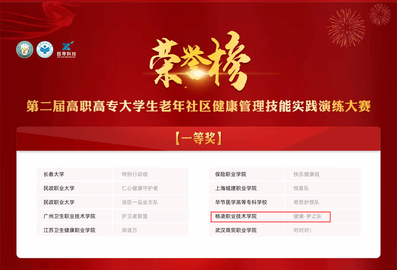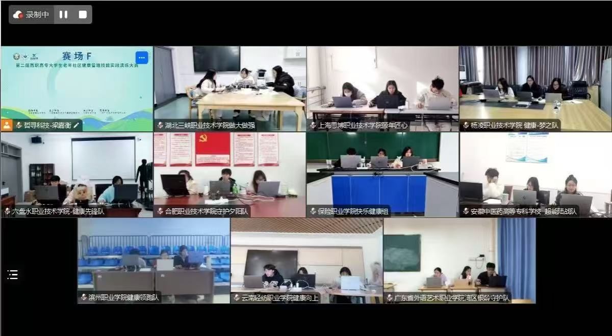 12月8日,由中国老年医学学会健康管理分会主办的老年社区健康管理实践技能演练大赛在线上进行,来自全国100所高职院校的104支队伍相约云端,同台竞技。由我校药物与化工学院教师韩飞、张亚萍指导,健康管理专业2023级舒妮等三位学生参赛,荣获一等奖。