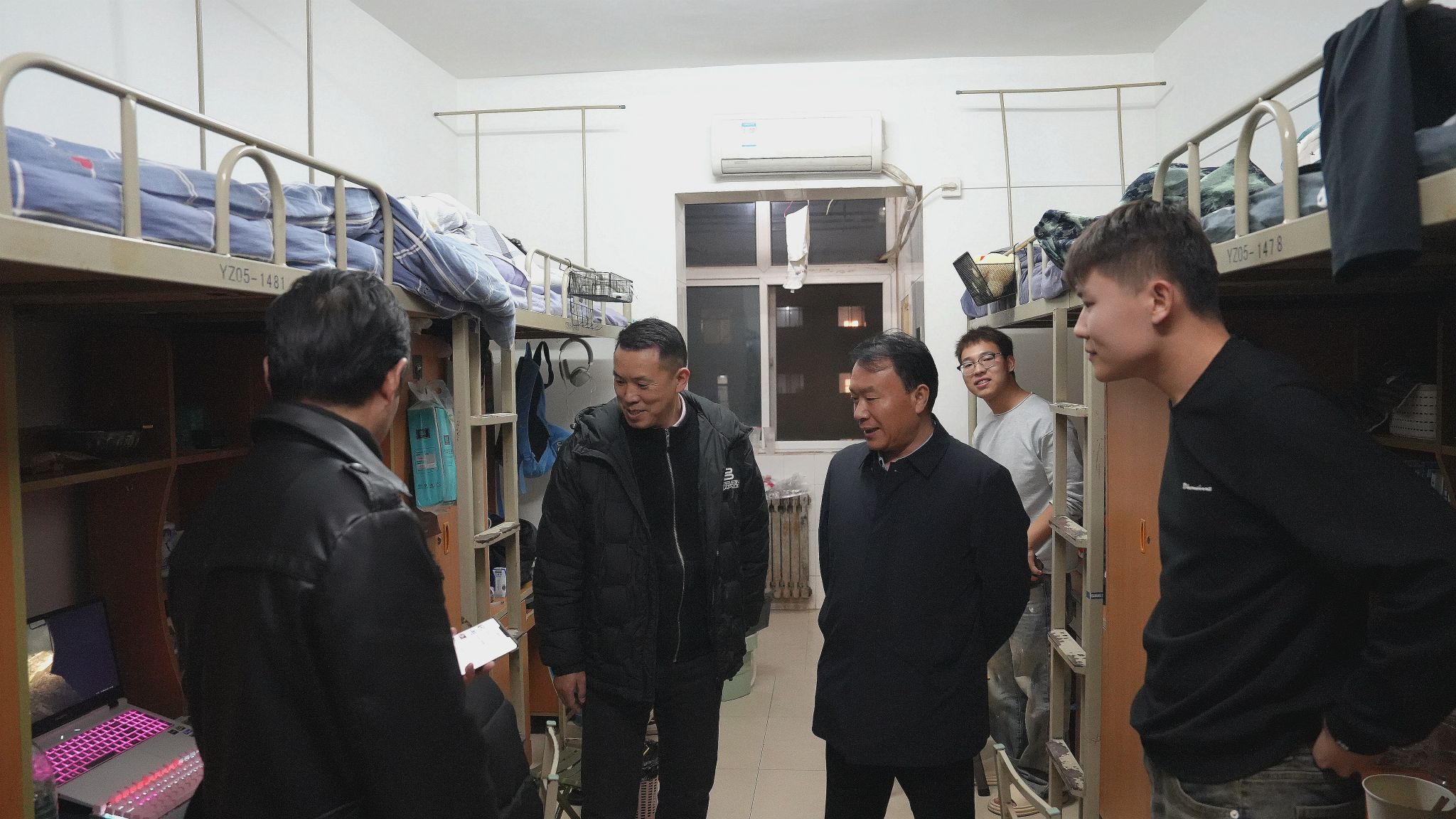 晚上,校领导分别带队深入三校区学生公寓看望返校学生,与学生们亲切交谈,询问他们的假期生活和返校后的适应情况,了解他们的生活情况和需求,并叮嘱他们注意安全,合理安排学习和生活,以饱满的精神状态迎接新学期。