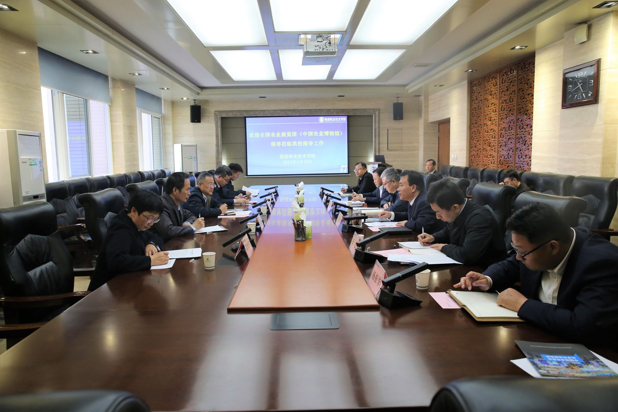 3月19日,全国农业展览馆党委书记刘子忠、农业会展促进中心主任朱祥龙、农业历史研究部研究馆员唐志强、农业历史研究部助理研究员李政、陕西省农产品质量安全中心副主任樊虎玲等来校考察调研。学校党委书记韩明军、党委副书记刘瑞明接待了刘子忠一行,杨凌示范区管委会副主任刘仲山,学校党委副书记、纪委书记王勇胜,陪同调研并参加座谈。