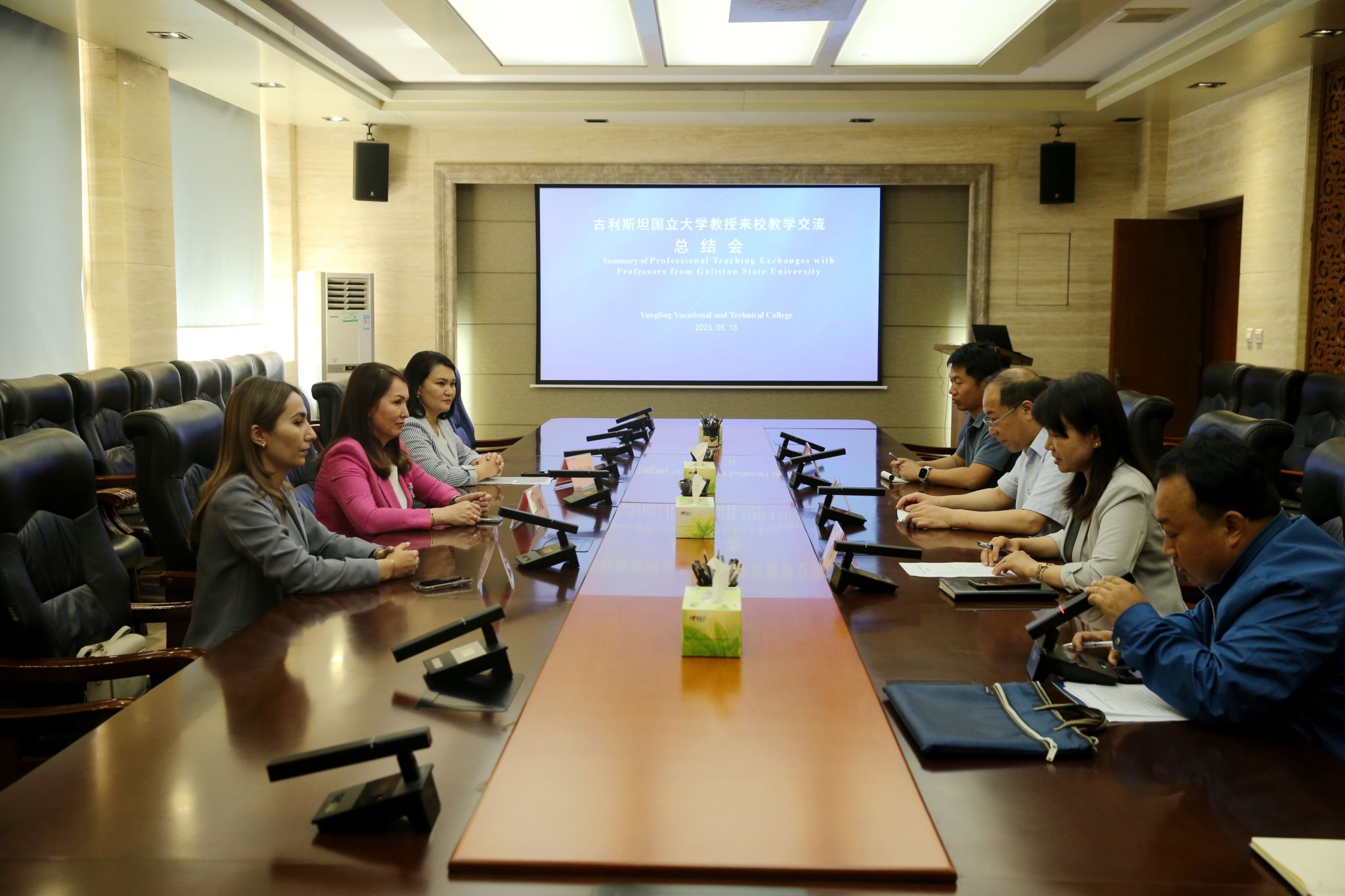 5月9日至16日,乌兹别克斯坦古利斯坦国立大学自然科学与化学系副教授埃蒂巴耶娃·洛拉洪、食品技术和加工系副教授图拉别科娃·迪洛罗姆、农业专业教师迪洛姆-图拉别科娃、生态与地理系教师托姆巴耶娃·迪尔诺扎一行3人来校开展为期一周的交流访问。校长仲伟周参加座谈会,国际学院负责人陪同交流。
