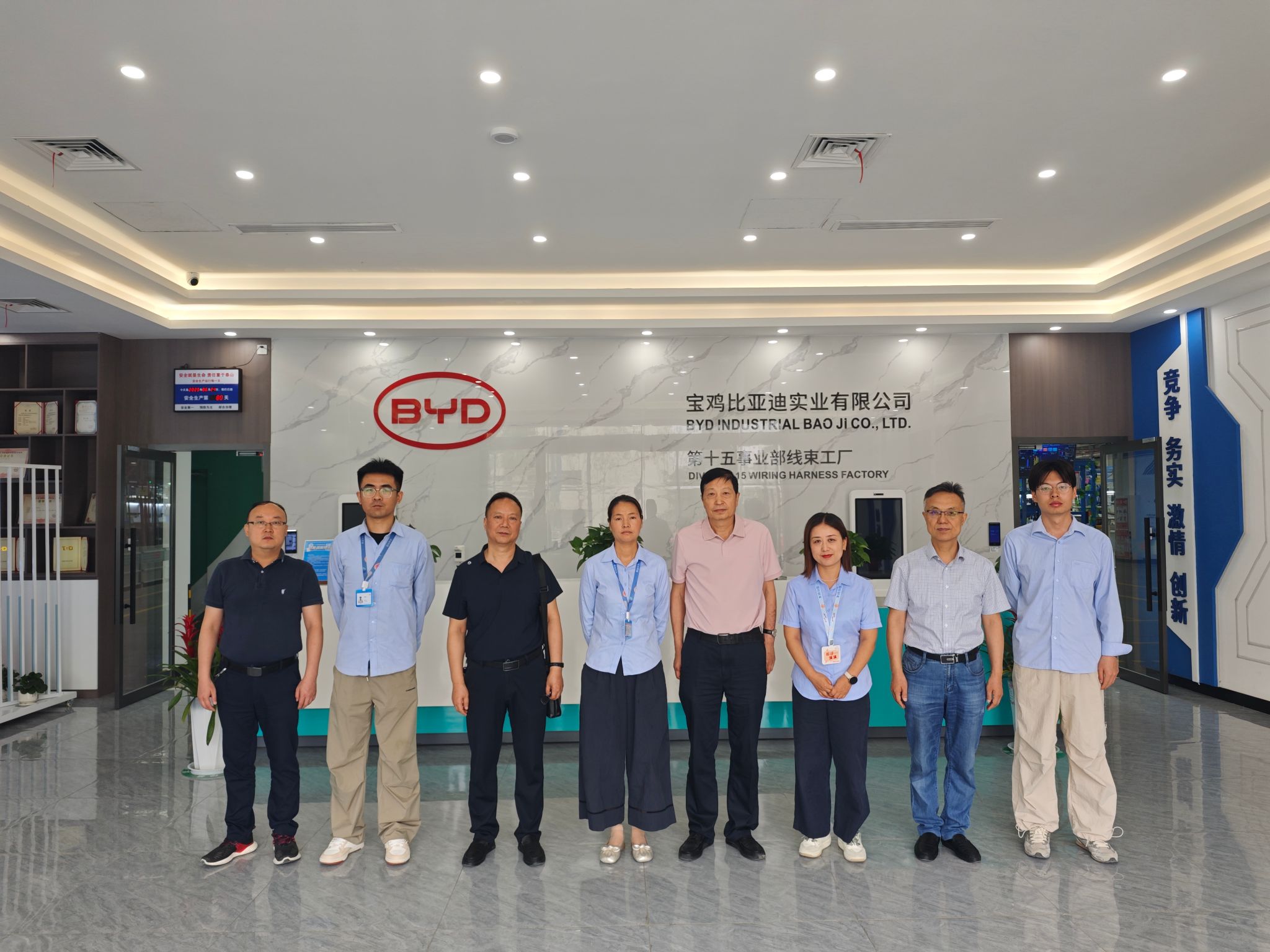 6月24日,副校长祝战斌带队赴宝鸡比亚迪实业有限公司线束工厂开展访企拓岗活动。机电工程学院相关负责人陪同调研。