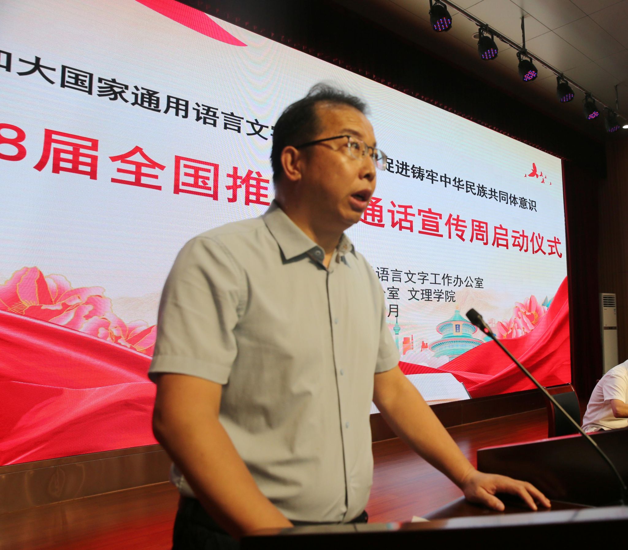 9月15日下午,学校在南校区思辩堂举行第28届全国推广普通话宣传周活动启动仪式。党委副书记刘瑞明出席活动并讲话,宣布推普周正式启动。