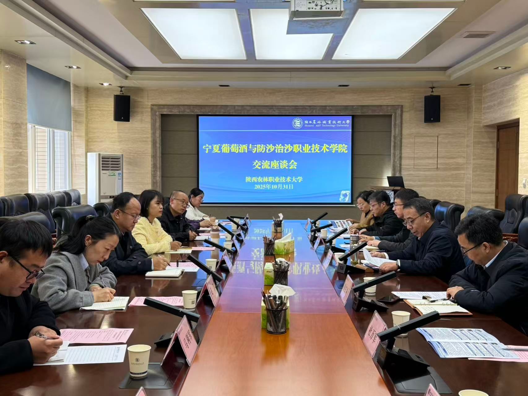 10月31日上午,宁夏葡萄酒与防沙治沙职业技术学院纪委书记马建军一行9人来校考察交流。学校党委副书记、纪委书记、监察专员康强出席座谈交流活动,水利工程学院相关负责人参加。