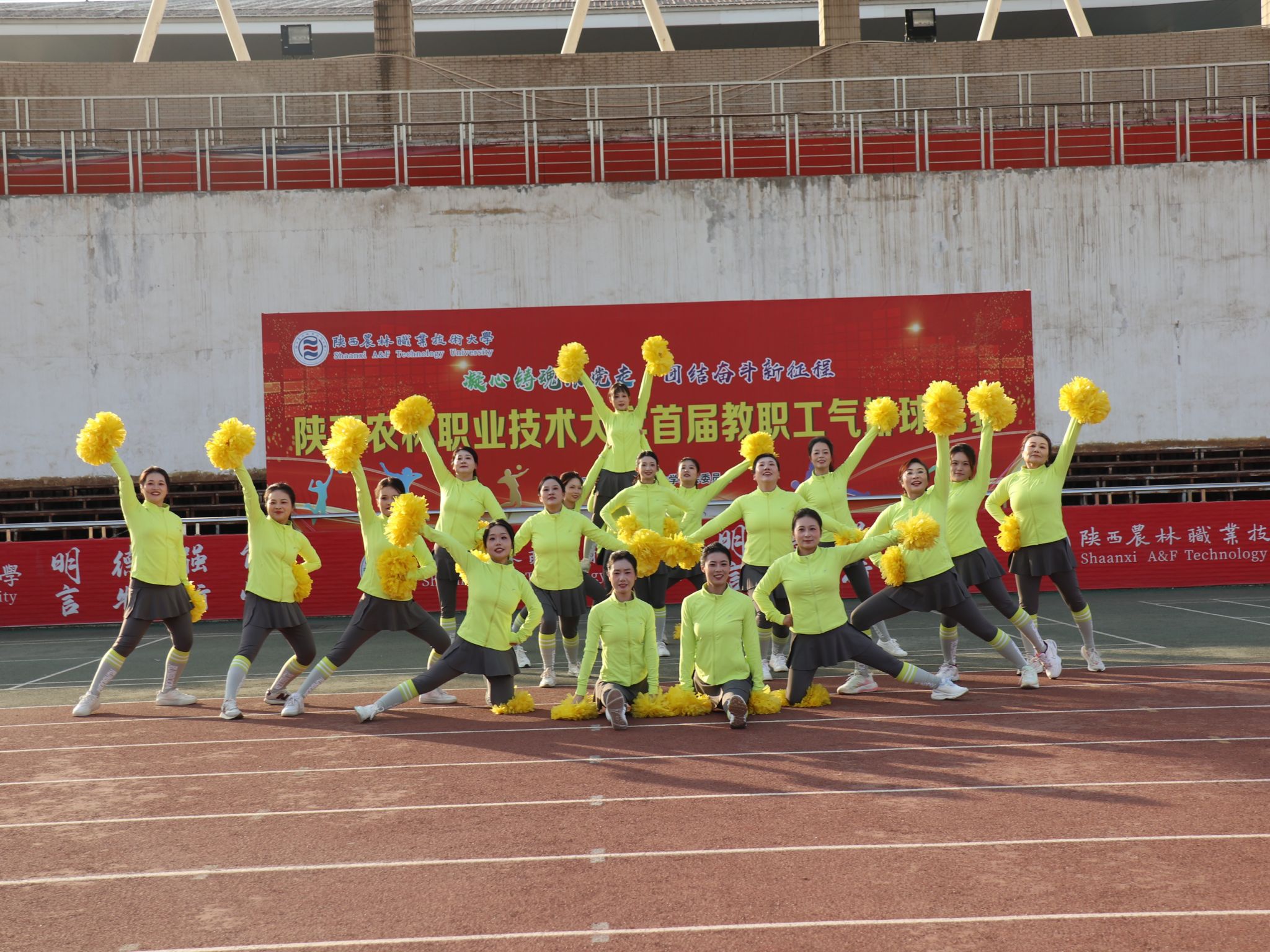开赛仪式上,教职工团体啦啦操以整齐划一的动作和饱满的精神状态点燃现场氛围,随后教职工联合献唱《我相信》,展现了积极进取、奋发向上的精神风貌。