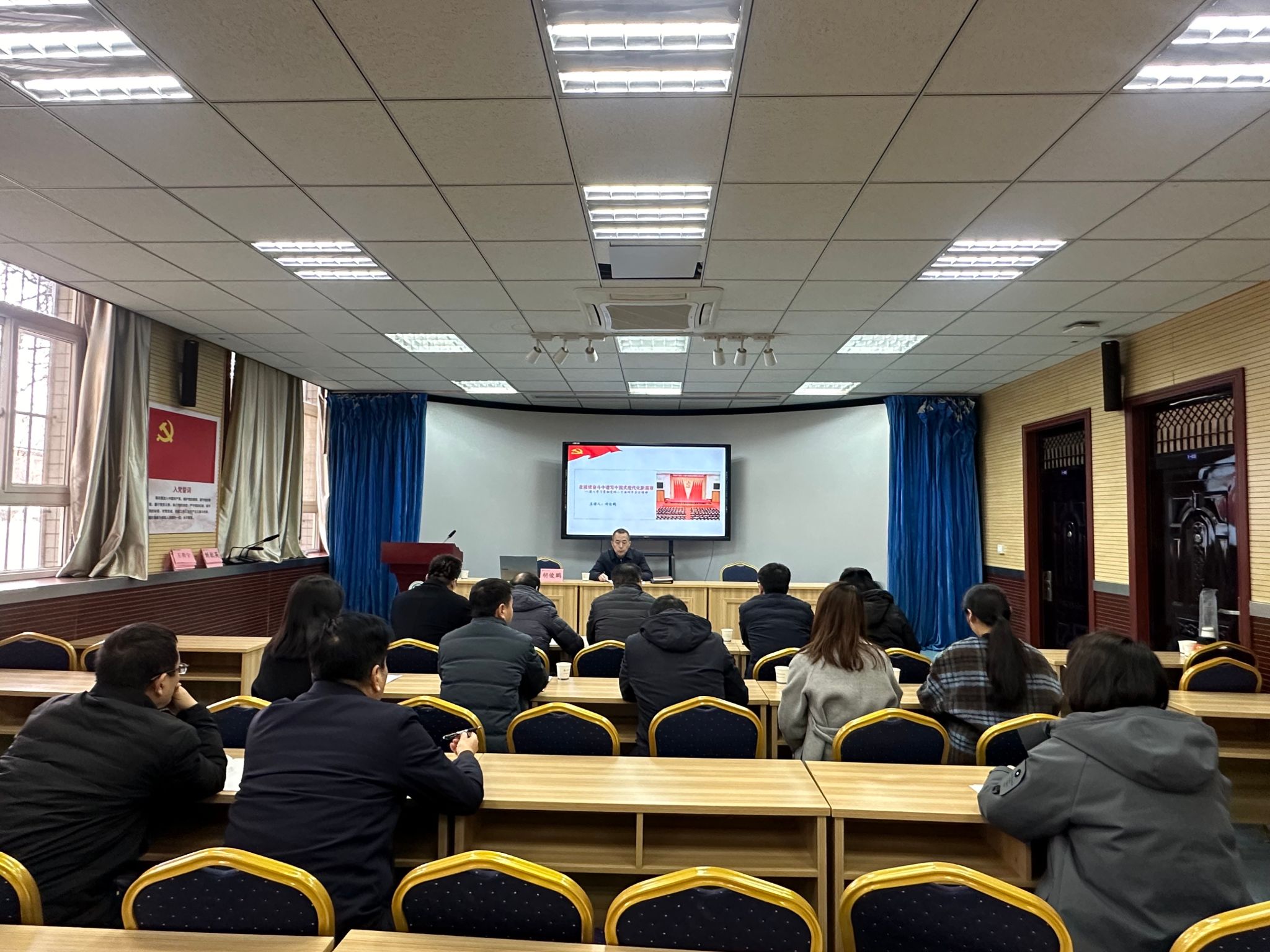 2月2日上午,副校长胡俊鹏以《深入学习贯彻党的二十届四中全会精神——在接续奋斗中谱写中国式现代化新篇章》为题,为联系部门及学院讲专题党课。