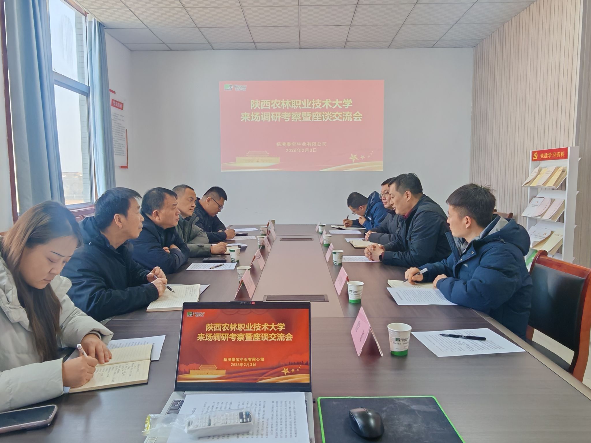 2月4日,党委副书记王勇胜带队赴陕西秦宝牧业发展有限公司开展访企拓岗活动。陕西秦宝牧业有限公司总经理王涛,学校党委(校长)办公室、动物工程学院、经济与贸易学院相关负责人和教师代表参加。