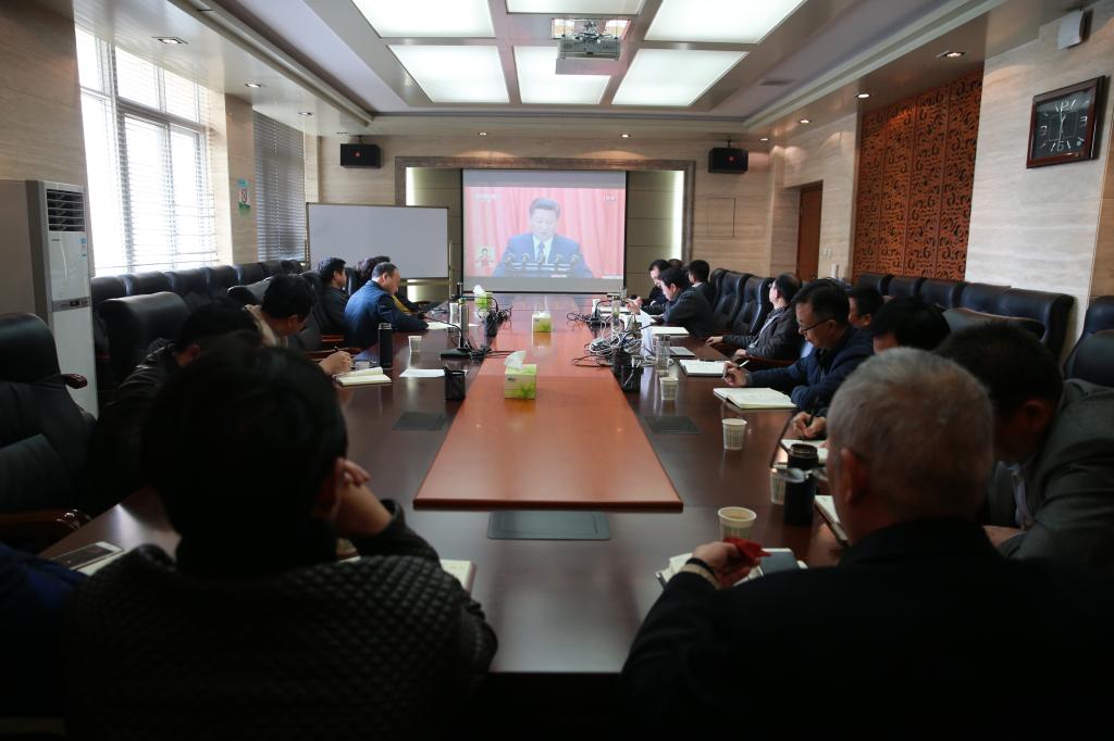 院党委理论学习中心组成员、各部门主要负责人收看党的十九大开幕会