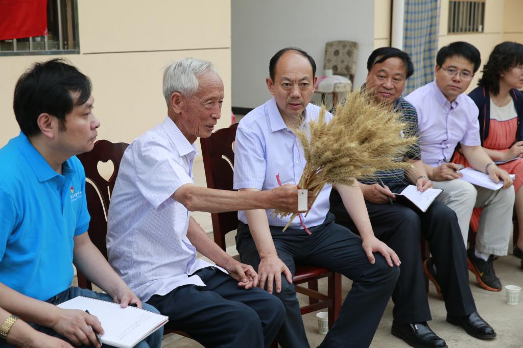 在赵瑜小麦研究所的院子里,董小龙、王周锁和大家一起,挨着赵瑜的小麦标本露天而坐,听著名小麦育种专家赵瑜讲述自己的“种子梦”。赵瑜对大家的到来表示欢迎。他说,大家能够来到生产科研第一线开展这次活动,下基层、接地气,对我来说也是一种激励,体现了省委高教工委的领导和各位老师对我的重视。在讲述自己的“种子梦”时,赵瑜从自己小时候就热爱田野说起,一直到高中、大学、回陕,向大家讲述了他的“种子梦”形成、追求、实现之路。随后又介绍了他在2011年以后培育的三个小麦新品种。