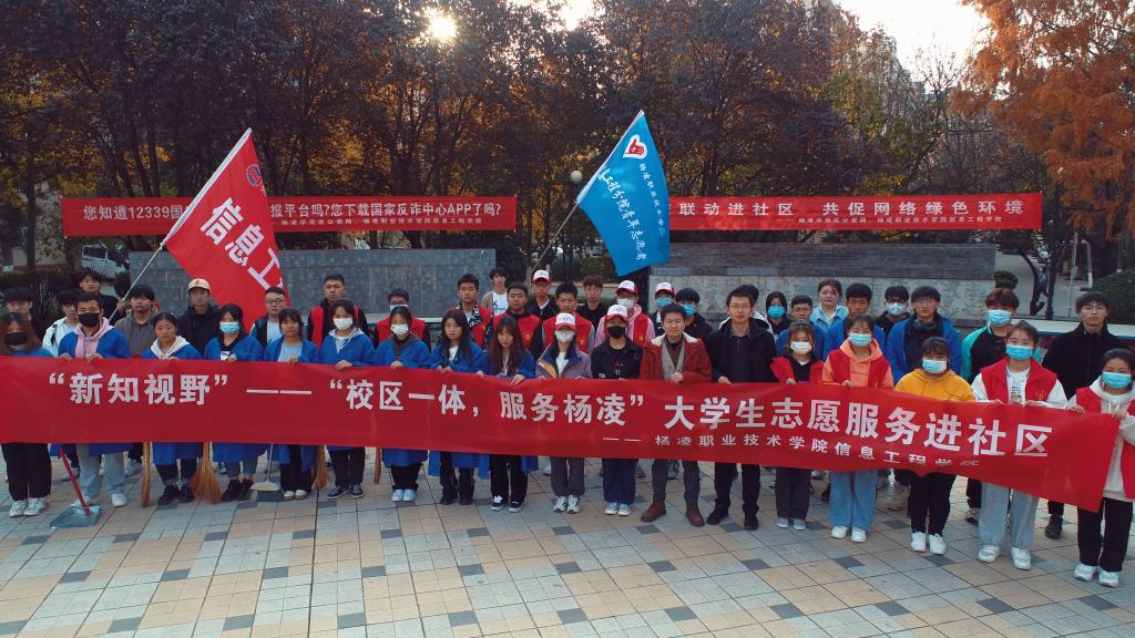 11月15日,信息工程学院依托“党建+”工作机制,联合示范区公安局反诈中心,在示范区田园居小区开展了“校区一体,服务杨凌”大学生社会实践活动。