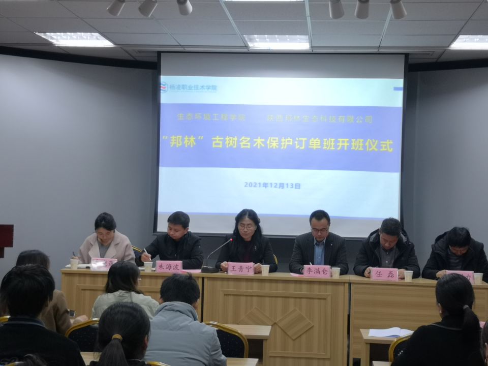 据了解,2020年,学校生态环境工程学院与陕西邦林生态科技有限公司签订合作协议,成立了古树名木保护中心,并联合申报了陕西省林科院科技创新计划项目,完成了西安兴庆宫公园古树保护项目。此次加入“邦林”古树名木保护订单班的14名学生,将按照培养方案和相关要求,不断提升专业知识和技术技能,为古树名木保护领域做出贡献。