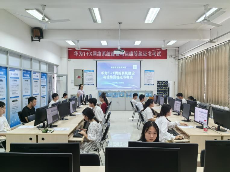 6月29日,华为“1+X”网络系统建设与运维(中级)、腾讯云“1+X”界面设计(中级)职业技能等级认证考试在南校区信息工程学院举行,信息工程学院35名同学参加了考试。