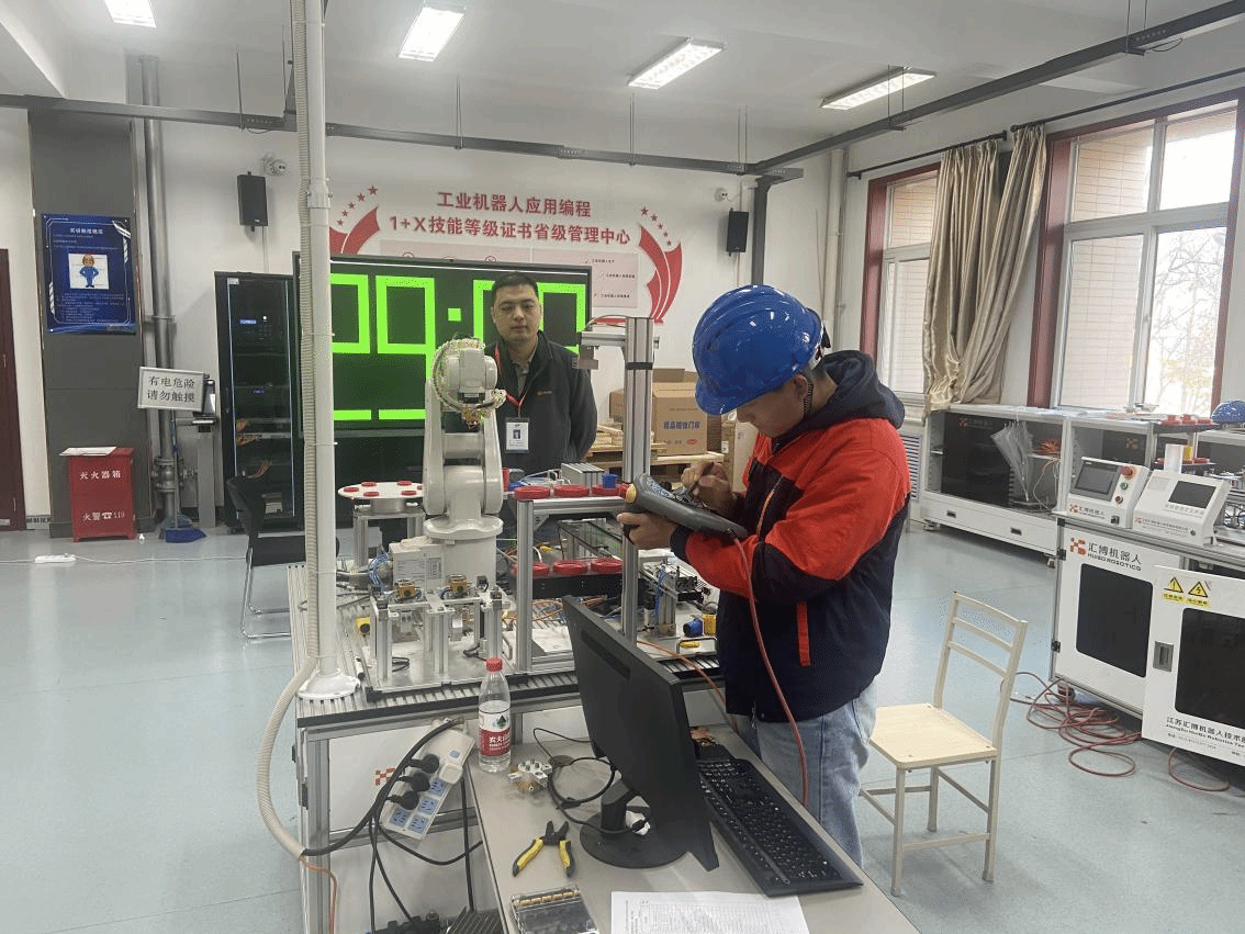 11月14日至16日,机电工程学院在工业机器人实训中心进行2025年工业机器人应用编程职业技能等级证书(中级)考核。工业机器人技术专业、电气自动化技术专业31名同学,以及12名社会考生共43人参加考核。