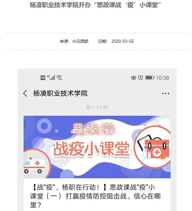 新冠肺炎疫情防控既是一次大战,也是一次大考,需要全国上下众志成城,齐心协力,携手打赢这场硬仗,用实际行动交出合格答卷。为将疫情防控的生动实践转化为鲜活课堂,培养广大学生的爱国主义情怀和担当奉献意识,践行高校立德树人的使命担当,2月24日起,我院马克思主义学院与党委宣传部在学院官微联合开办了“思政课战‘疫’小课堂”。
