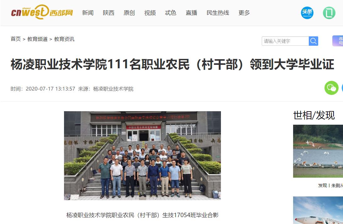 7月16日,杨凌职业技术学院生物工程分院2017级职业农民和村干部顺利毕业。这111名来自富平县、眉县、杨陵区的职业农民和村干部学员2017年入学,通过三年全日制学历教育,顺利完成学业拿到毕业证书,成为学院农民大学学历教育班的第二批毕业生。
