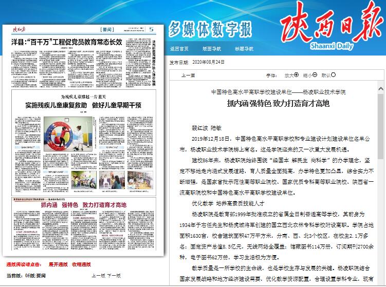【陕西日报】杨凌职业技术学院 抓内涵 强特色 致力打造育才高地