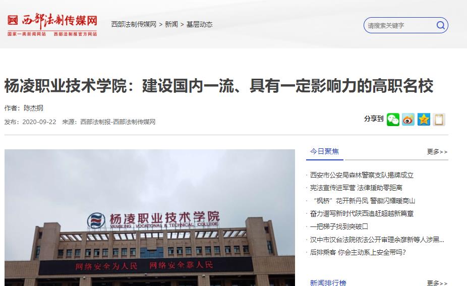 近年来,杨凌职业技术学院始终围绕“经国本,解民生,尚科学”的办学理念,坚定不移地走内涵式发展道路,育人质量全面提高,办学特色更加凸显,综合实力不断增强,是国家首批示范性高等职业院校、国家优质专科高等职业院校、陕西省一流高职院校和中国特色高水平高职学校建设单位。近年来,杨凌职院坚持内培外引并举,引进高层次人才15名,使在校博士达到25名,涌现出多名省级以上教学名师、优秀教师、师德标兵。特别是聘请西北农林科技大学的康振生院士、张涌院士为学院首席科学家,并在学院设立康振生院士植物生物技术工作室、张涌院士动物生物技术工程中心,进一步加强了学院的师资力量、提升了学院的影响力。