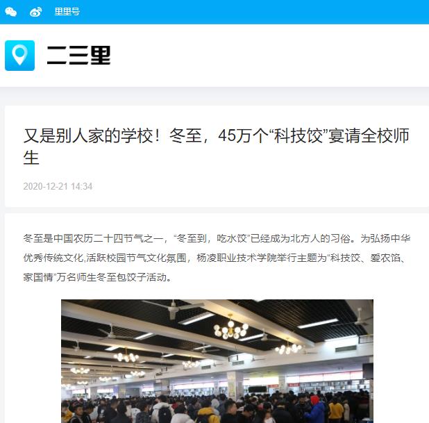 【中国农科新闻网】“农”情饺子 温暖冬至!杨凌职院45万个“科技饺”上桌了!