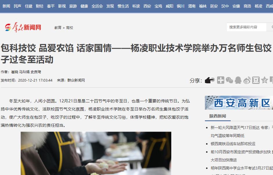 【群众新闻网】包科技饺 品爱农馅 话家国情——杨凌职业技术学院举办万名师生包饺子过冬至活动