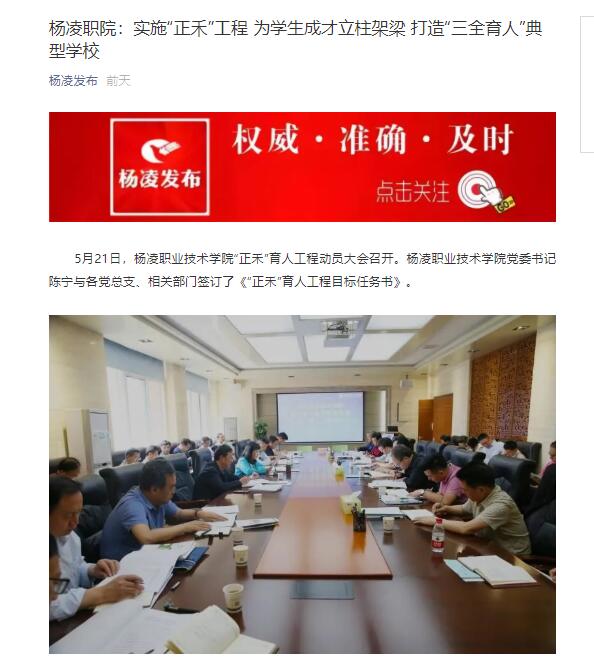 【杨凌发布】杨凌职院:实施“正禾”工程 为学生成才立柱架梁 打造“三全育人”典型学校