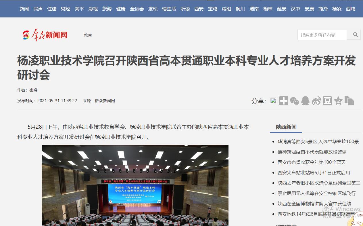 5月28日上午,由陕西省职业技术教育学会、杨凌职业技术学院联合主办的陕西省高本贯通职业本科专业人才培养方案开发研讨会在杨凌职业技术学院召开。