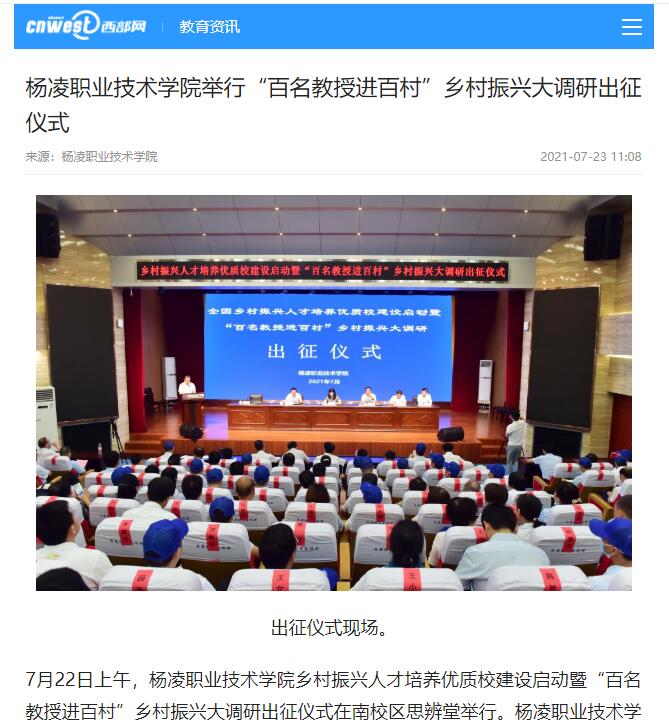 杨凌职业技术学院校长王周锁在动员讲话中指出,乡村振兴人才培养优质校建设的启动和“百名教授进百村”乡村振兴大调研活动的开展,具有三重意义。一是服务国家战略,奋进第二个百年新征程。二是传承学校精神,奋力开启“十四五”新征程。三是体现家国情怀,奋斗在基层一线书写最美担当。参加调研活动的全体专家教授,要围绕踏实备课、扎实调研、务实解难、充实提升、切实互动“五个实”,以高度的责任心和使命感,开展好联系一个村、举办一场专题培训、提供一项技术、帮扶一个产业、撰写一份调研报告“五个一”工作,落实好加强组织领导、统筹协调、监管指导、成果凝练、宣传引导“五个加强”要求,以实际行动勇担乡村振兴使命、积极服务国家战略。