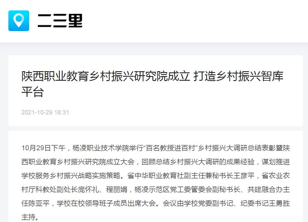 王彦平在讲话中指出,杨凌职院组织开展的“百名教授进百村”乡村振兴大调研活动,不仅具有深入一线技术服务指导和科技助农发展的现实意义,更具有先行探路的示范作用和借鉴推广的引领价值。揭牌成立的“陕西省职业教育乡村振兴研究院”,是职业教育助力乡村振兴的重要研究平台和深度融合载体,对于有效整合我省优质职教资源,强化我省职业教育科研力量协同联动,探索职业教育助力乡村振兴新路径、新模式,全面提升职业教育服务乡村振兴和区域经济社会发展的能力,具有十分重要的意义。他表示,省中华职教社将与政府相关部门一起,全力以赴支持研究院的建设运行与研究发展,一起将研究院打造成新时代职业教育助力乡村振兴的高水平新型智库、决策智囊、研究基地和学术中心。