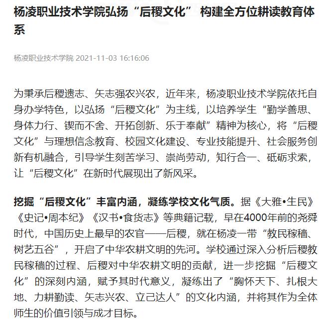 【陕西头条】杨凌职业技术学院弘扬“后稷文化” 构建全方位耕读教育体系