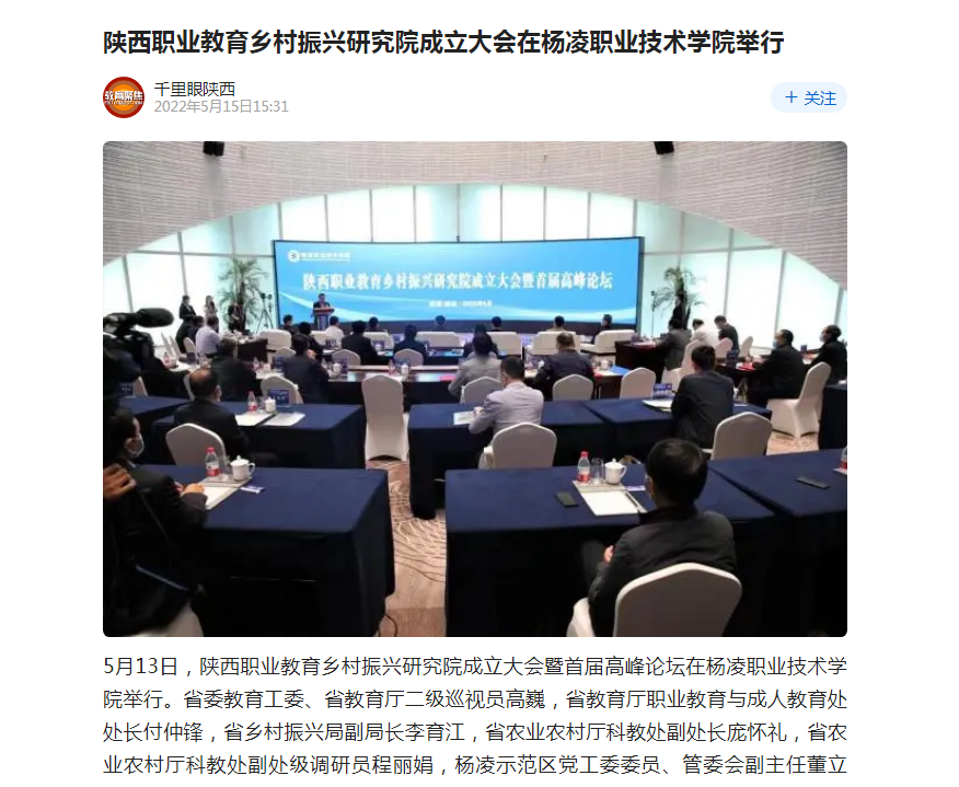 【腾讯新闻】陕西职业教育乡村振兴研究院成立大会在杨凌职业技术学院举行