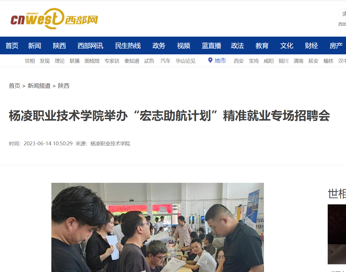 【西部网】杨凌职业技术学院举办“宏志助航计划”精准就业专场招聘会