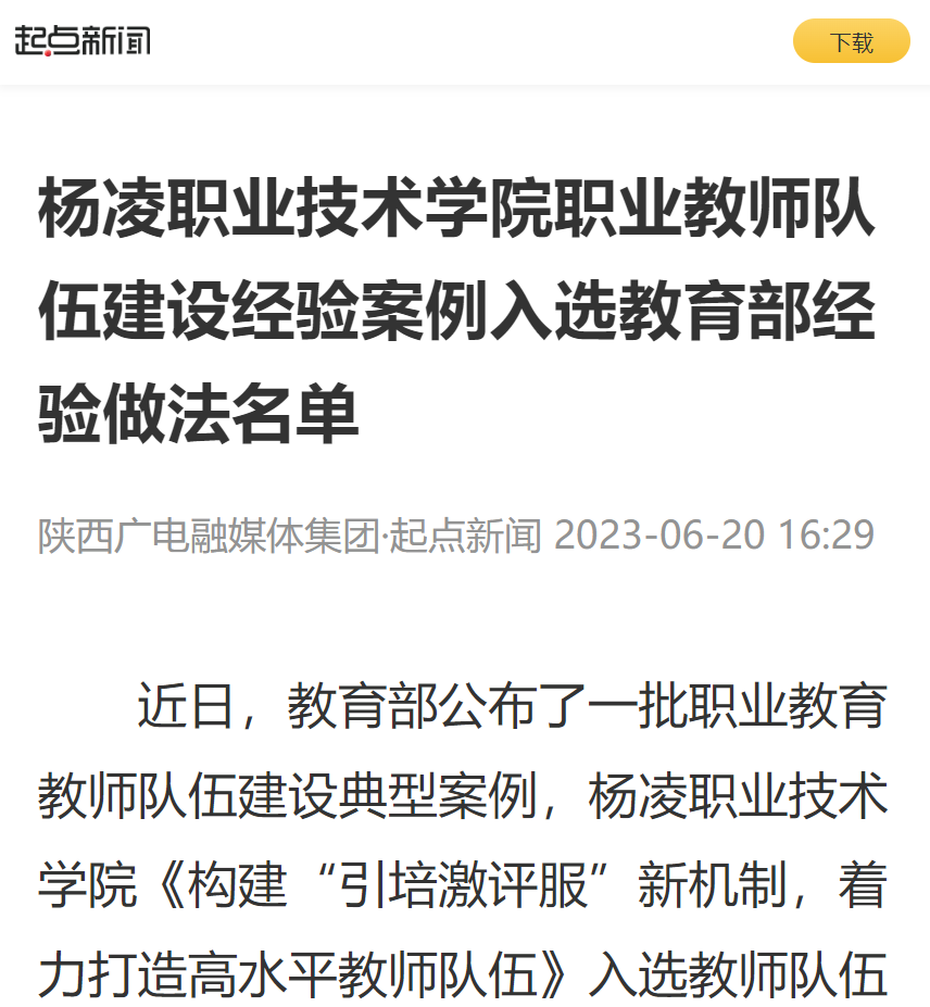 近日,教育部公布了一批职业教育教师队伍建设典型案例,杨凌职业技术学院《构建“引培激评服”新机制,着力打造高水平教师队伍》入选教师队伍建设经验做法名单。