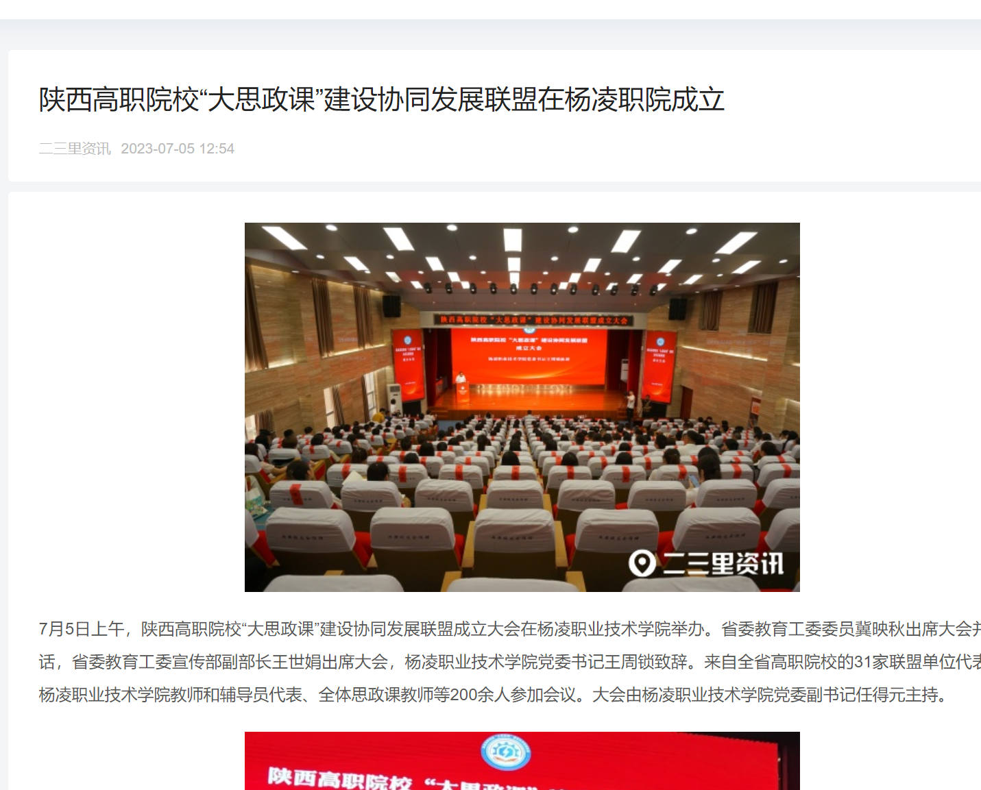陕西高职院校“大思政课”建设协同发展联盟在陕西省委教育工委、省教育厅领导与支持下,以“坚持立德树人,共享教育资源,形成整体优势,突出育人特色,推进协同发展”为基本原则,聚焦联盟长效机制建设、育人路径创新研究、加强优质资源推广,更好地探索全省高职院校“大思政课”建设的思路模式和实践路径,不断深化新时代思政课改革创新,全面推进课程思政高质量建设,构建陕西高职院校“大思政课”建设的交流与合作平台。联盟于2022年11月由牵头单位杨凌职业技术学院发起成立倡议,目前已有全省31家高职院校加入。