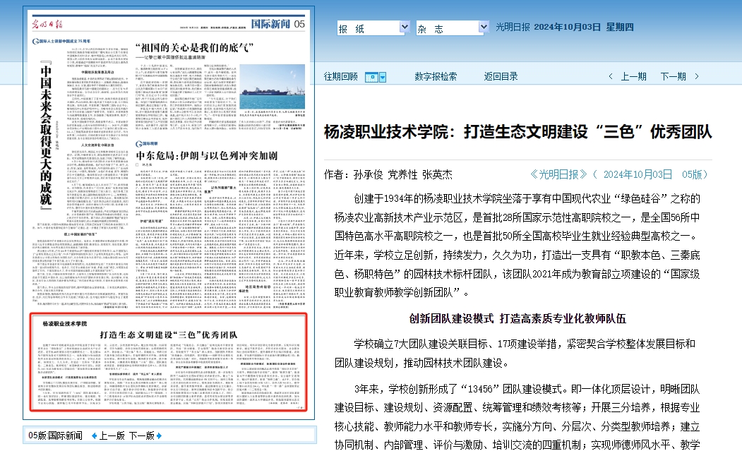 创建于1934年的杨凌职业技术学院坐落于享有中国现代农业“绿色硅谷”之称的杨凌农业高新技术产业示范区,是首批28所国家示范性高职院校之一,是全国56所中国特色高水平高职院校之一,也是首批50所全国高校毕业生就业经验典型高校之一。近年来,学校立足创新,持续发力,久久为功,打造出一支具有“职教本色、三秦底色、杨职特色”的园林技术标杆团队,该团队2021年成为教育部立项建设的“国家级职业教育教师教学创新团队”。